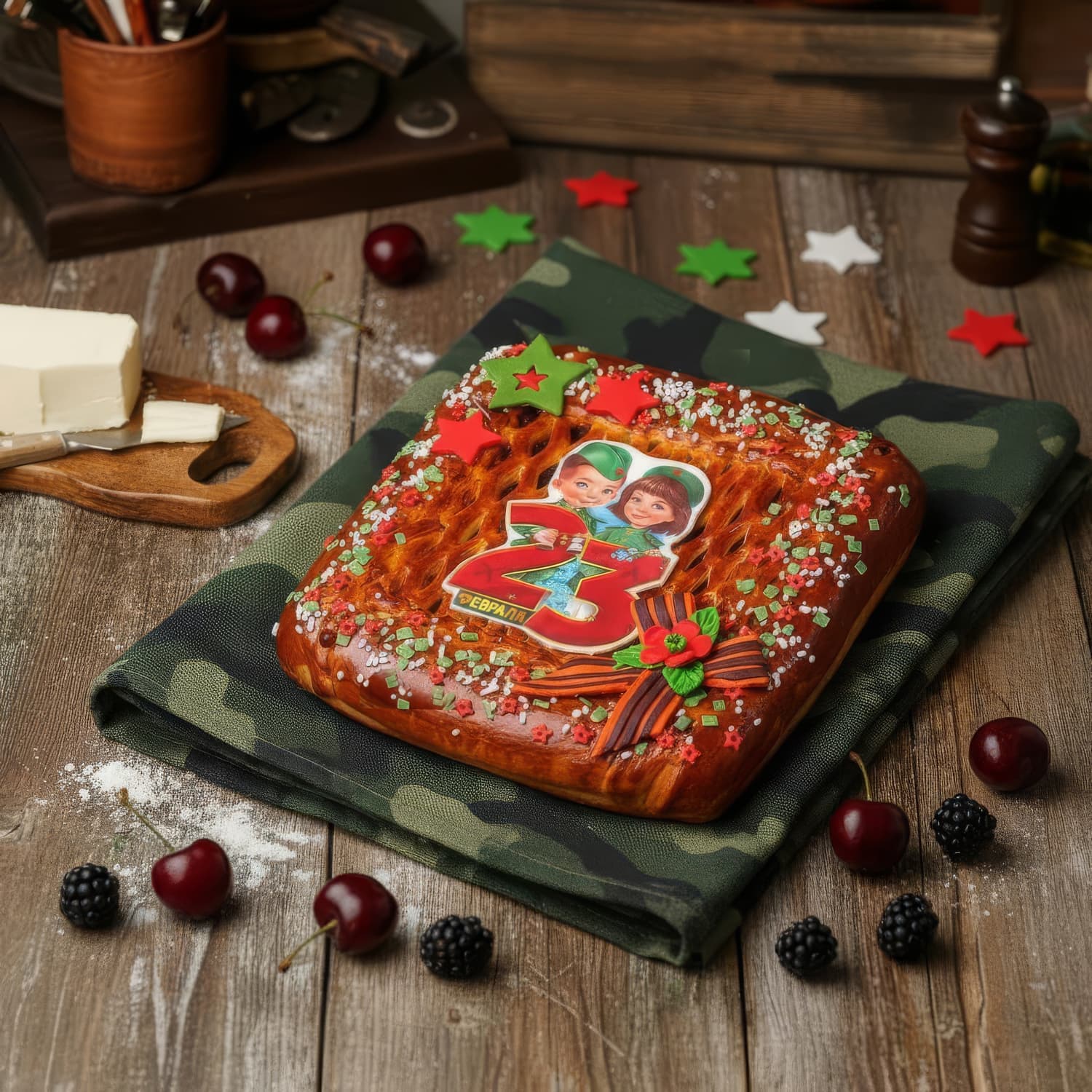 Продукция «Каравай-СВ». Пирог вишня и лесная ягода 2000г с мастикой