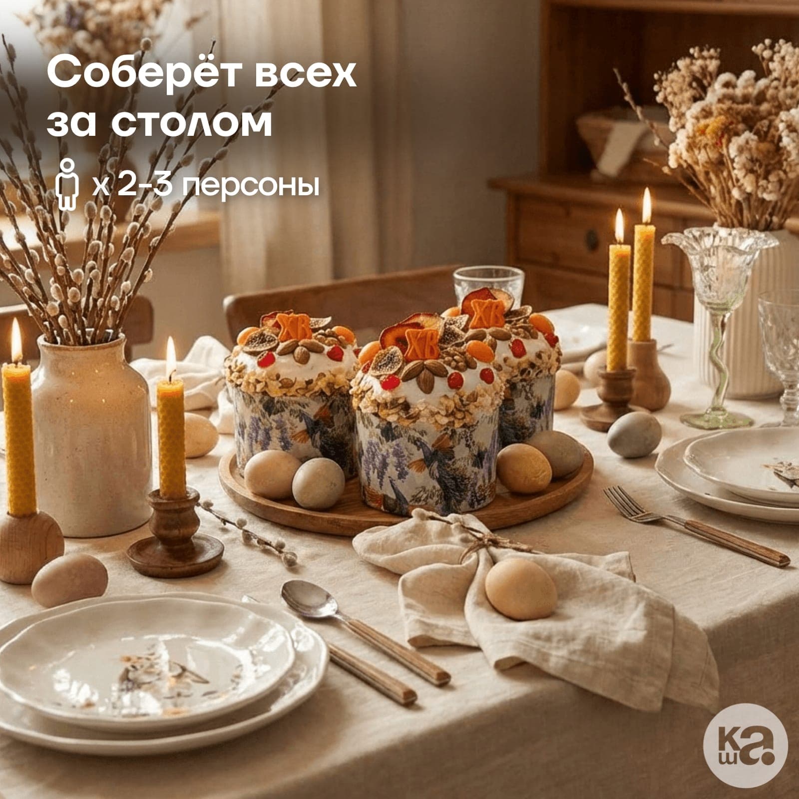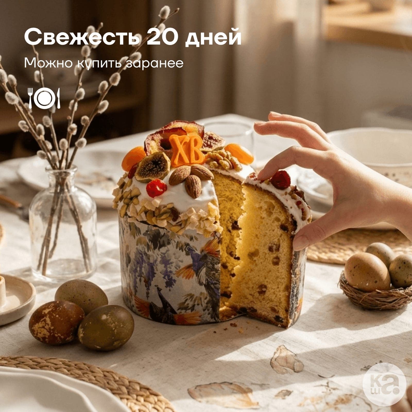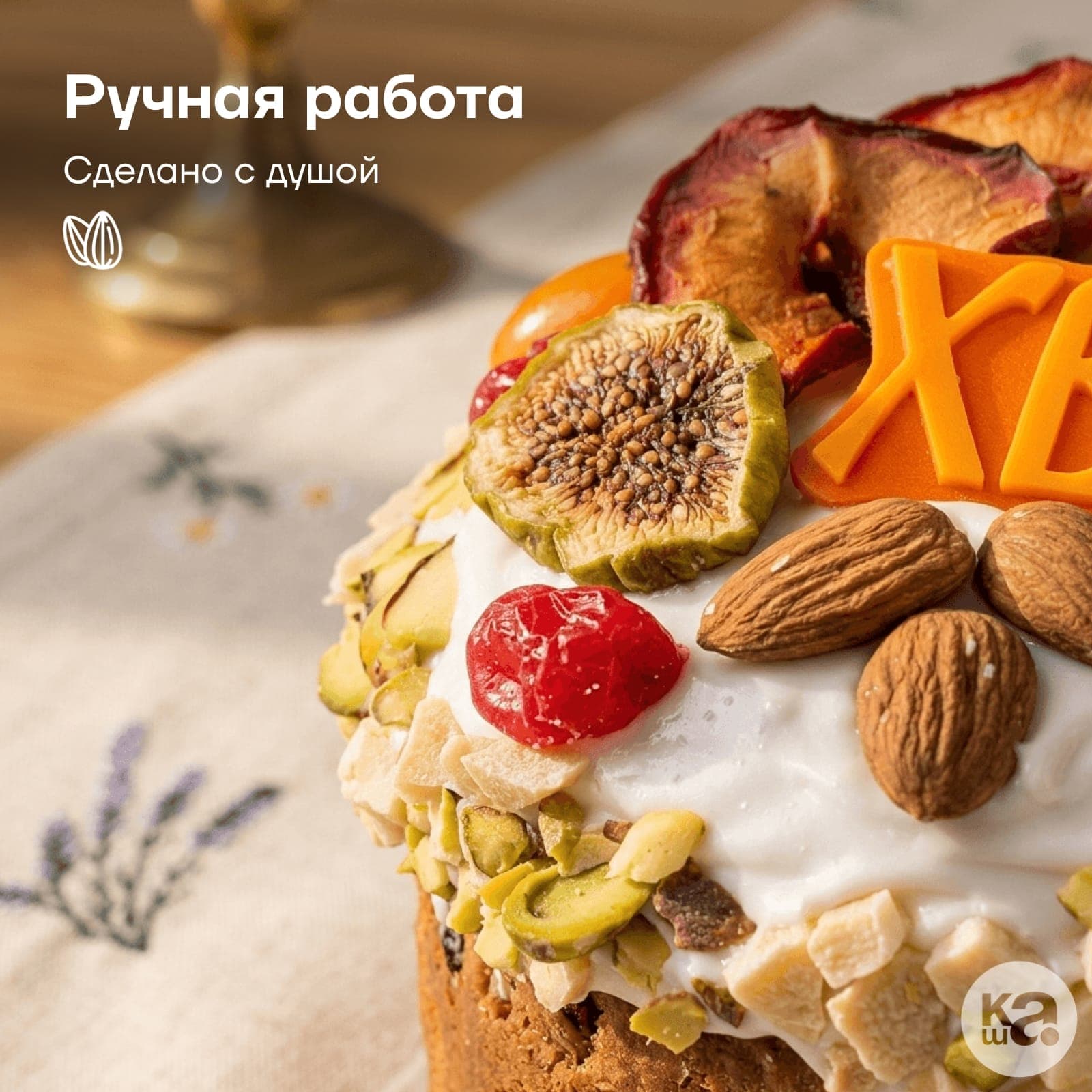 Праздничный кулич, созданный по классическому рецепту на основе пшеничной муки высшего сорта и натуральных желтков. Сливочное масло 82,5% придает мякишу нежность, а букет из шафрана, мускатного ореха и кардамона в сочетании с каплей рома наполняет дом благородным ароматом.