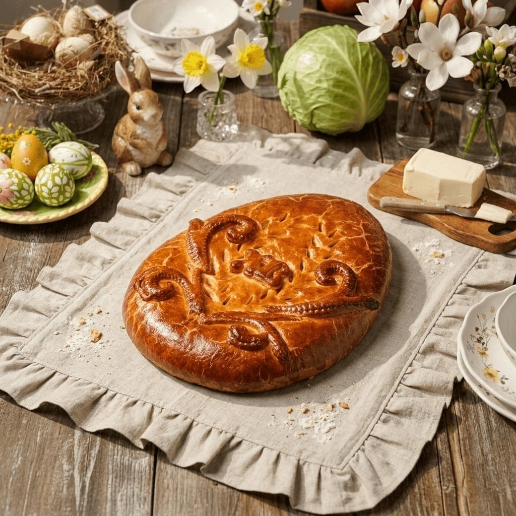 Пирог пасхальный «Русские узоры» с капустой