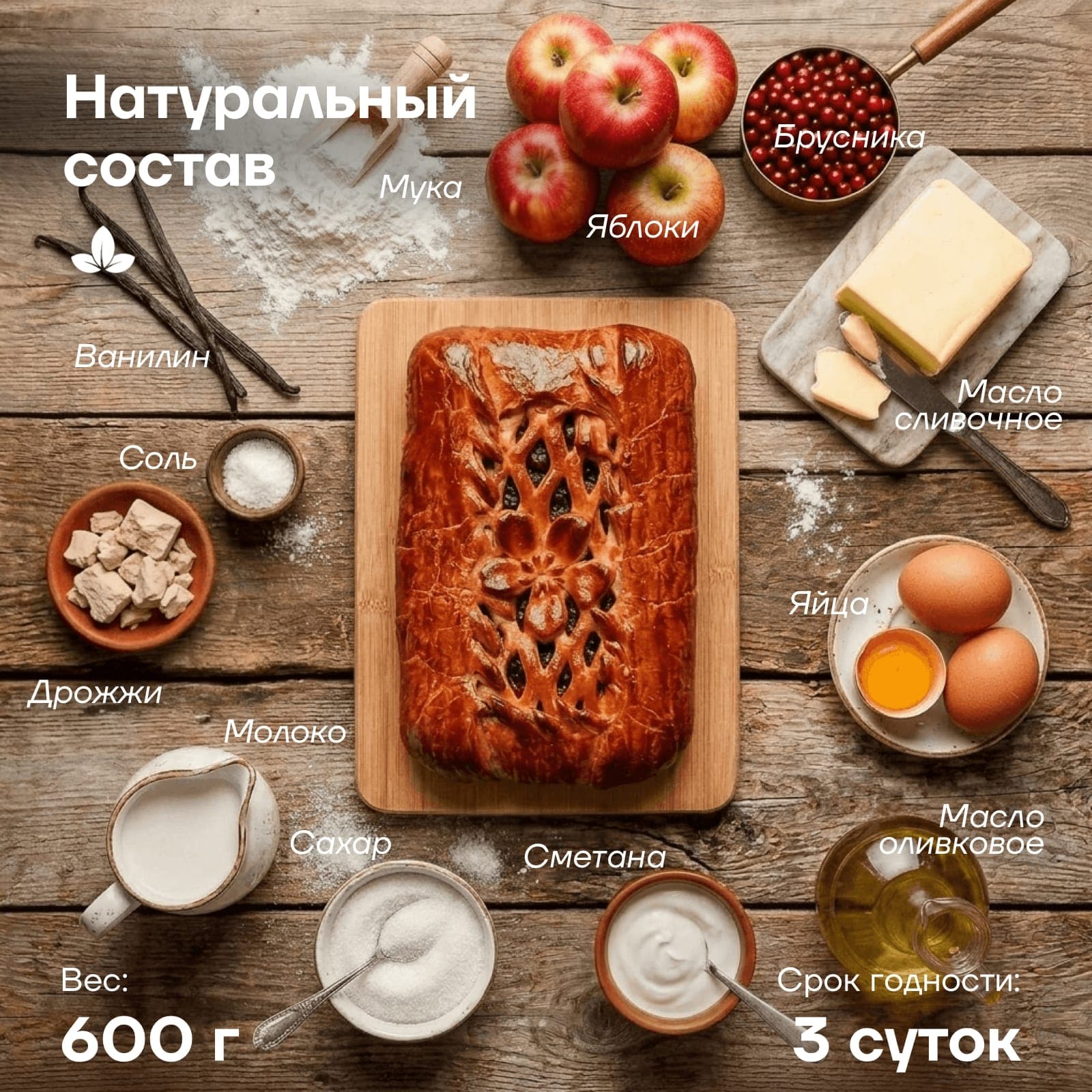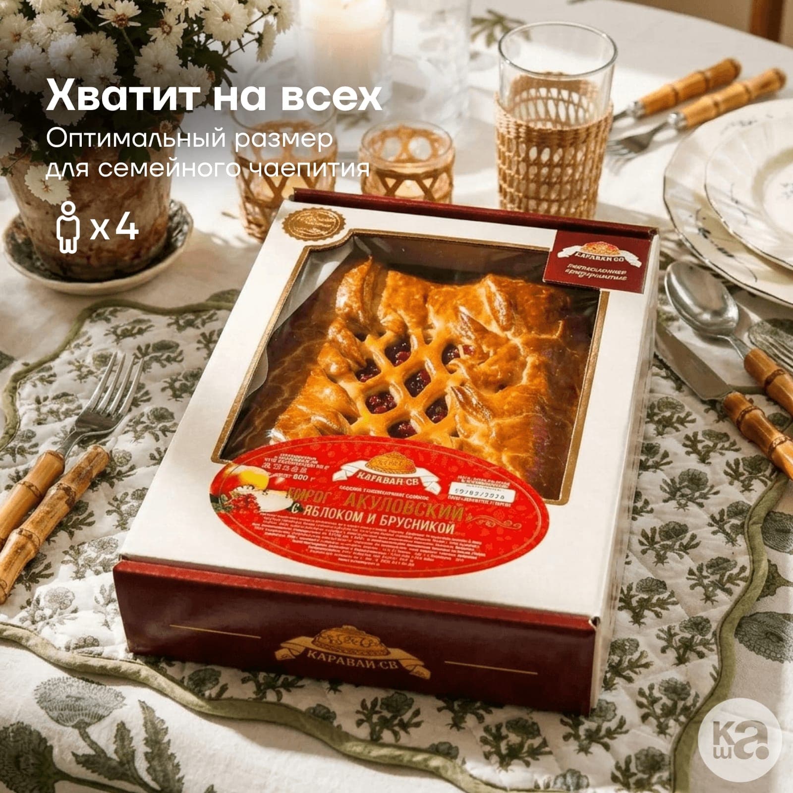 Изысканное сочетание от мастеров «Каравай-СВ»: под румяной корочкой скрывается классический дуэт из сладких садовых яблок и таежной брусники.