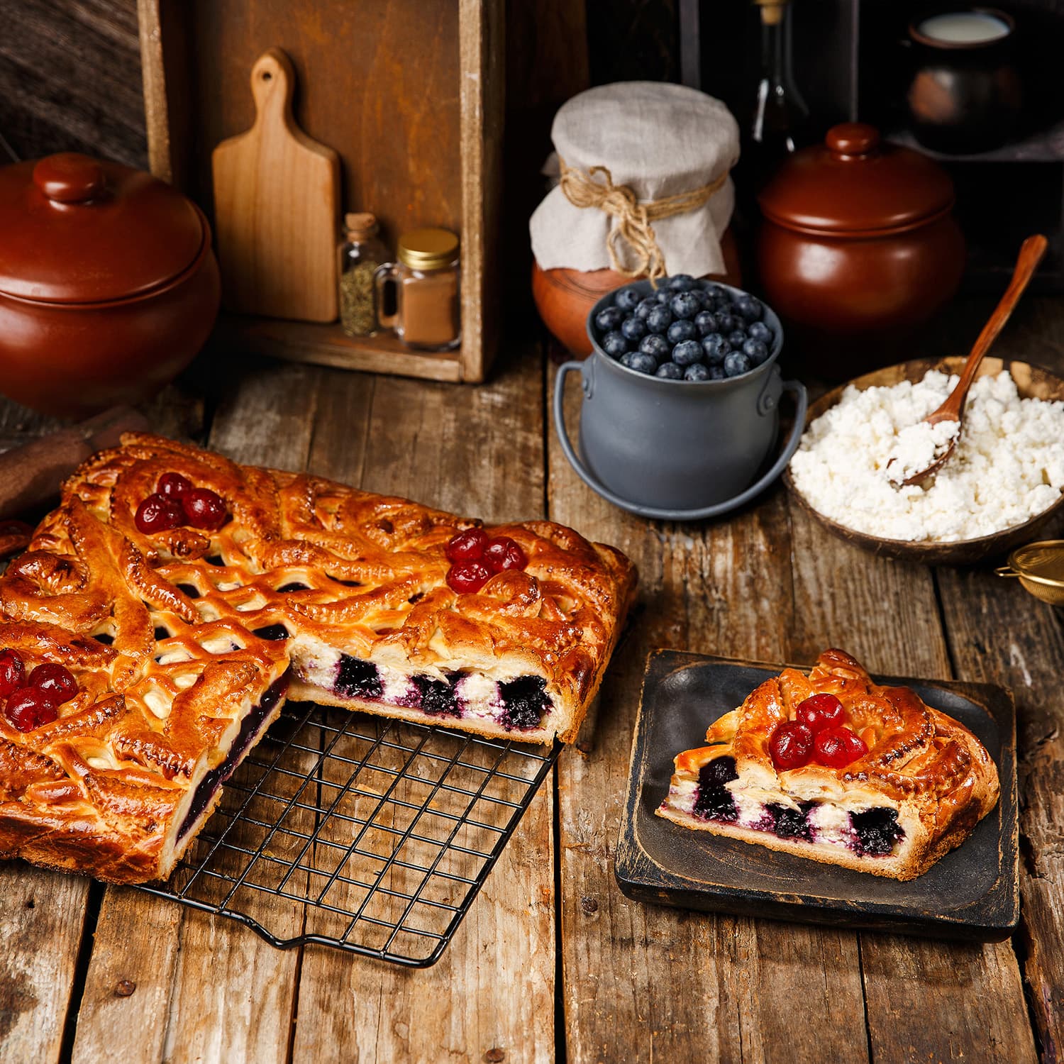 Пирог Русские узоры творог и черника
