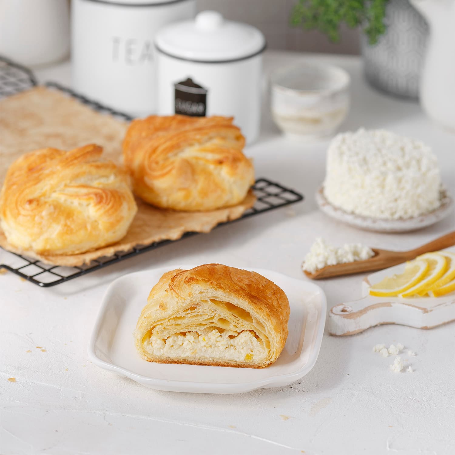 мука пшеничная хлебопекарная высший сорт, творог м.д.ж.9%, масло сливочное м.д.ж.82,5%, молоко питьевое м.д.ж. 3.2%, сахар белый, яйца куриные, лимоны свежие, дрожжи хлебопекарные, соль поваренная пищевая, ванилин