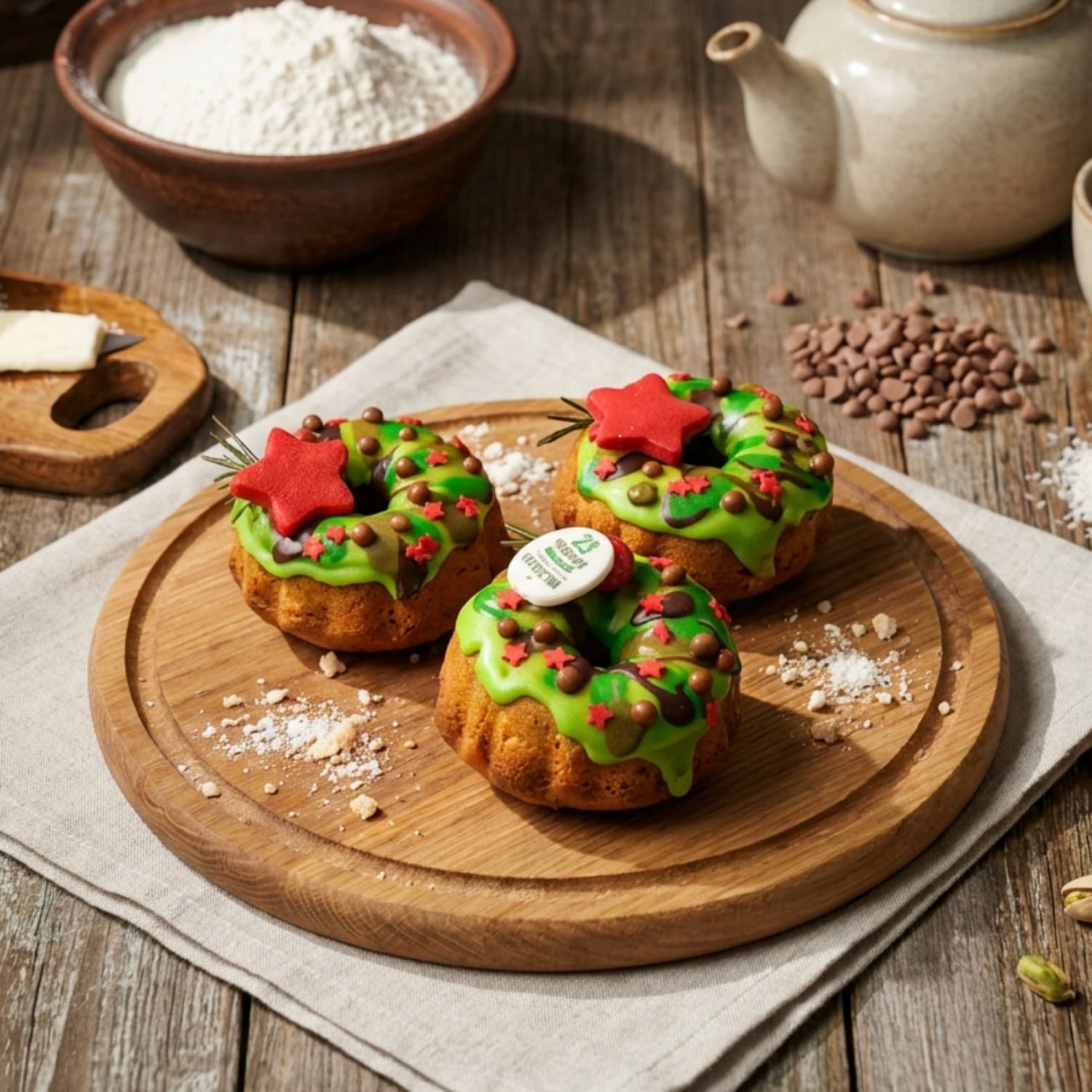 мука пшеничная хлебопекарная высший сорт, сахар белый, яйца куриные, масло сливочное м.д.ж. 82,5%, помадка (сахар, глюкозный сироп, регулятор кислотности (кислота лимонная)), вода питьевая, смесь кондитерская для кексов (мука пшеничная хлебопекарная высший сорт, сахар, сыворотка молочная сухая, разрыхлитель (гидрокарбонат натрия (сода пищевая)), регулятор кислотности (кислота лимонная)), шоколад тёмный (сахар, какао-масса, какао-масло, эмульгатор (соевый лецитин), натуральный ароматизатор-ваниль), масло подсолнечное рафинированное, драже фундук (шоколадная глазурь белая (сахар, какао-масло, молоко цельное сухое эмульгатор (соевый лецитин), натуральный ароматизатор - ванилин, краситель пищевой, ядро фундука жареное)), украшения сахарные (сахар белый, патока, яичный белок, желатин, регулятор кислотности (лимонная кислота), краситель пищевой), посыпка декоративная фигурная (сахар, мука рисовая, декстроза, эмульгатор (лецитин рапсовый), глазирователь (шеллак), краситель пищевой, ароматизатор "Ванилин", антиокислитель (аскорбиновая кислота)), краситель пищевой, розмарин свежий, соль поваренная пищевая, добавка пищевая (гидрокарбонат аммония), ванилин, добавка пищевая (гидрокарбонат натрия (сода пищевая))