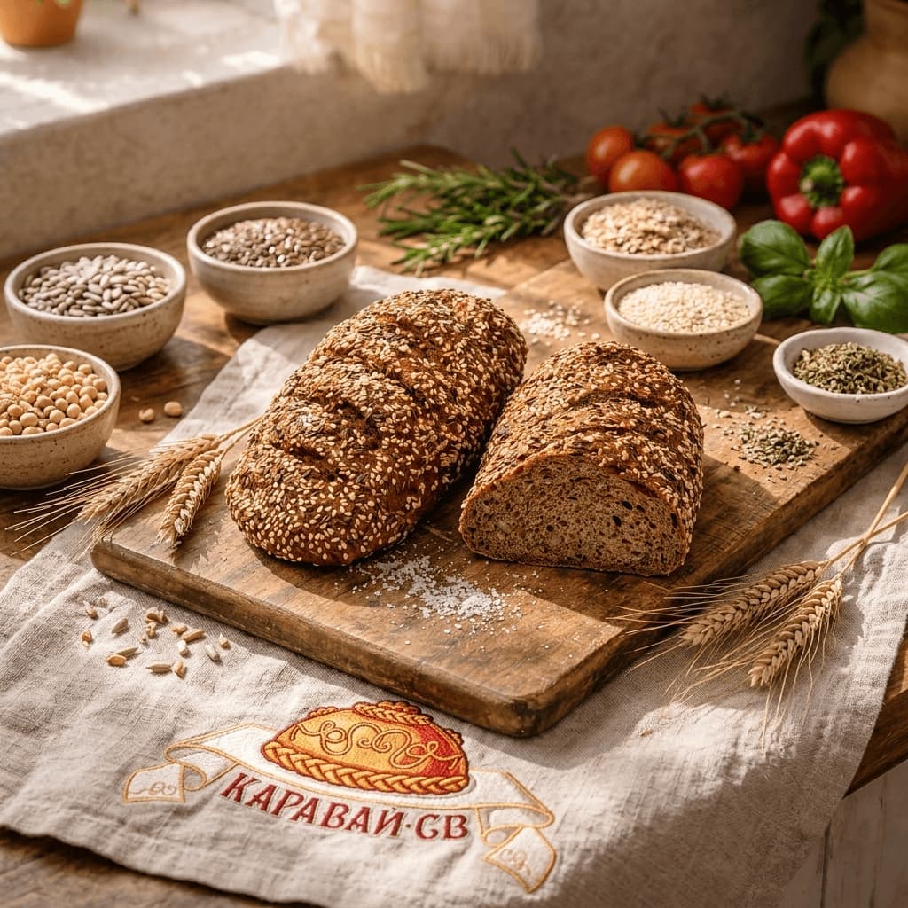 Идеальный хлеб для тех, кто любит яркий вкус и ценит пользу. В составе — смесь семян (подсолнечника, льна, кунжута), соя и пшеничные отруби для сытости. Аромат придают пряные травы (орегано, майоран, базилик, розмарин), а также лук, чеснок и паприка. Это отличный вариант для бутербродов, перекуса или как дополнение к супам и салатам.