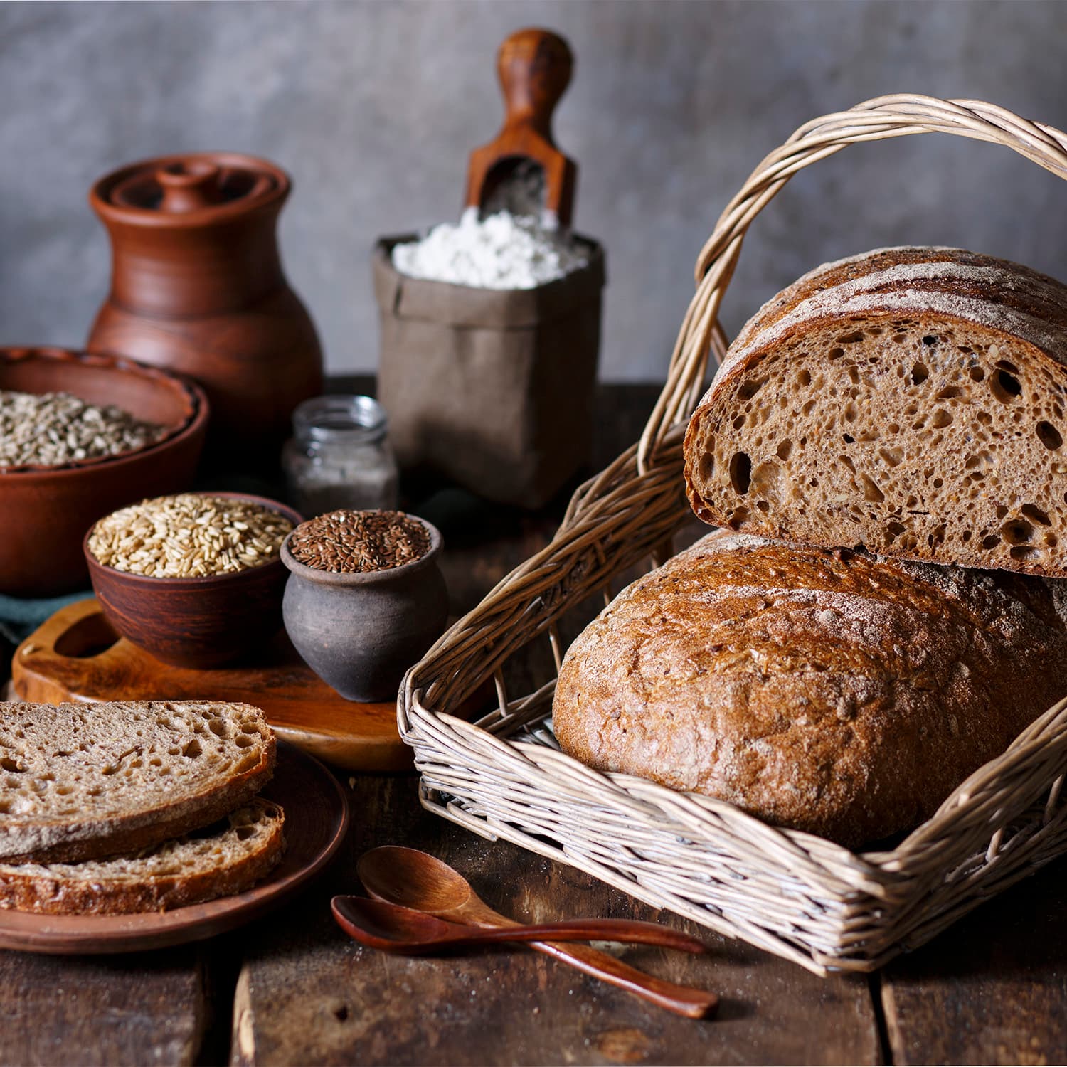 мука пшеничная хлебопекарная высший сорт, вода питьевая, мука ржаная хлебопекарная обдирная, семена подсолнечника,семена льна, соя дробленая, отруби пшеничные, масло оливковое, соль поваренная пищевая, солод ячменный