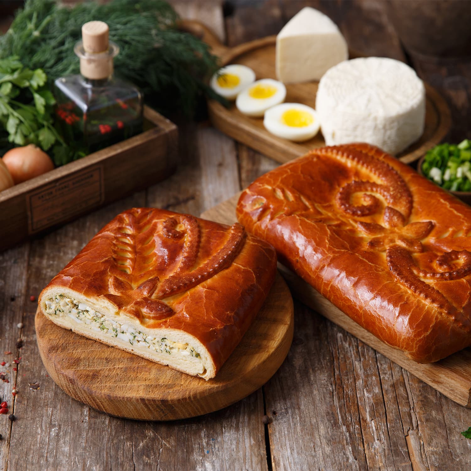 Пирог «Акуловский» с сыром, яйцом и зеленью