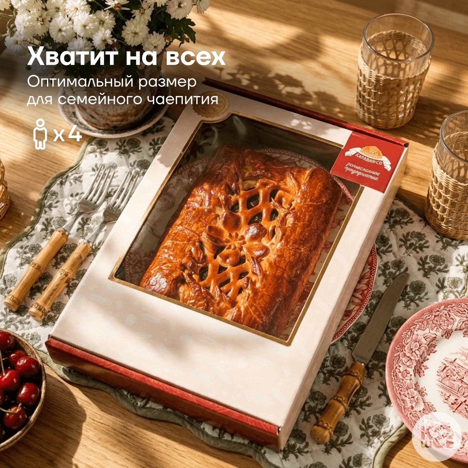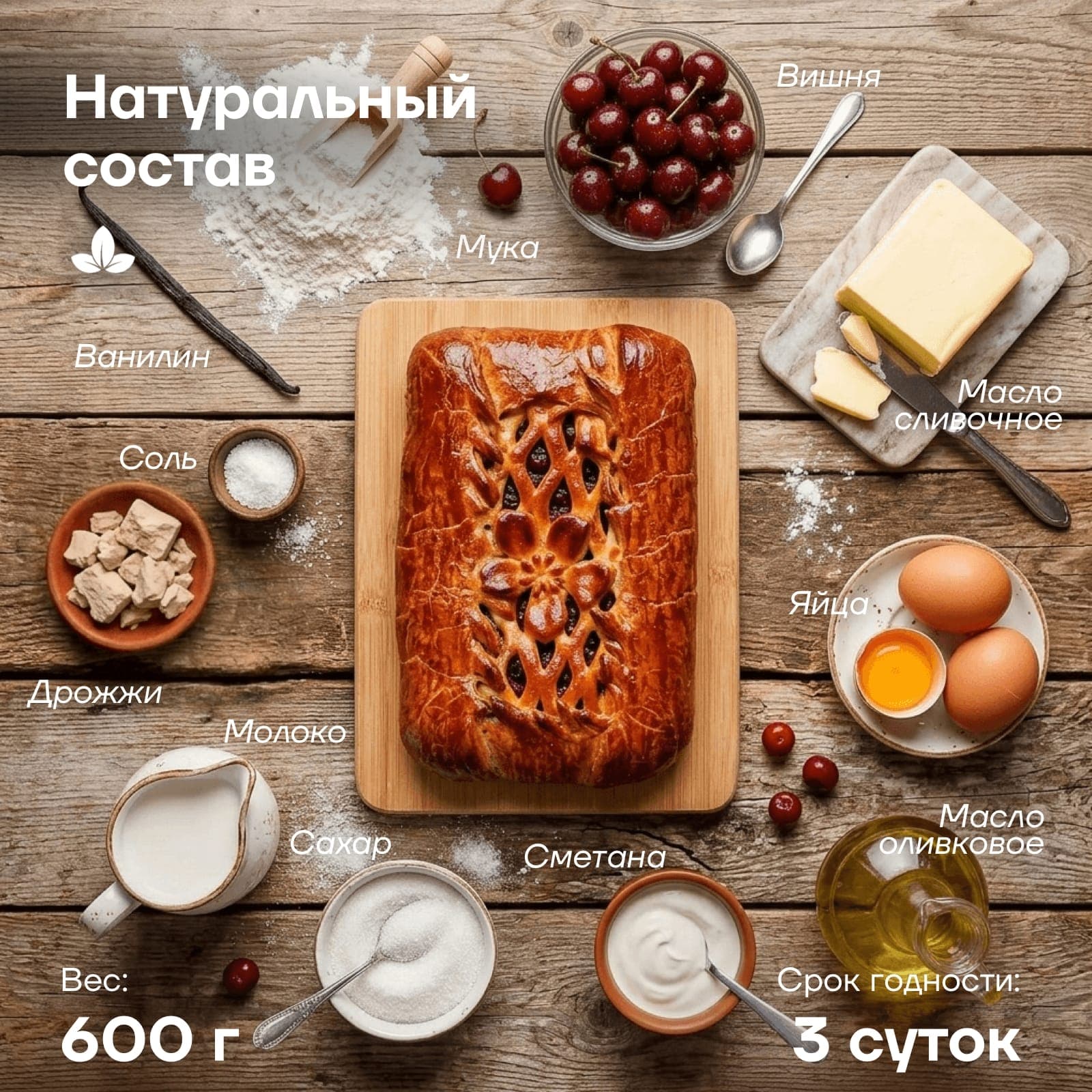 Тонкое и нежное тесто на натуральном сливочном масле и свежей сметане, буквально тает во рту, дополняя вишневое изобилие.