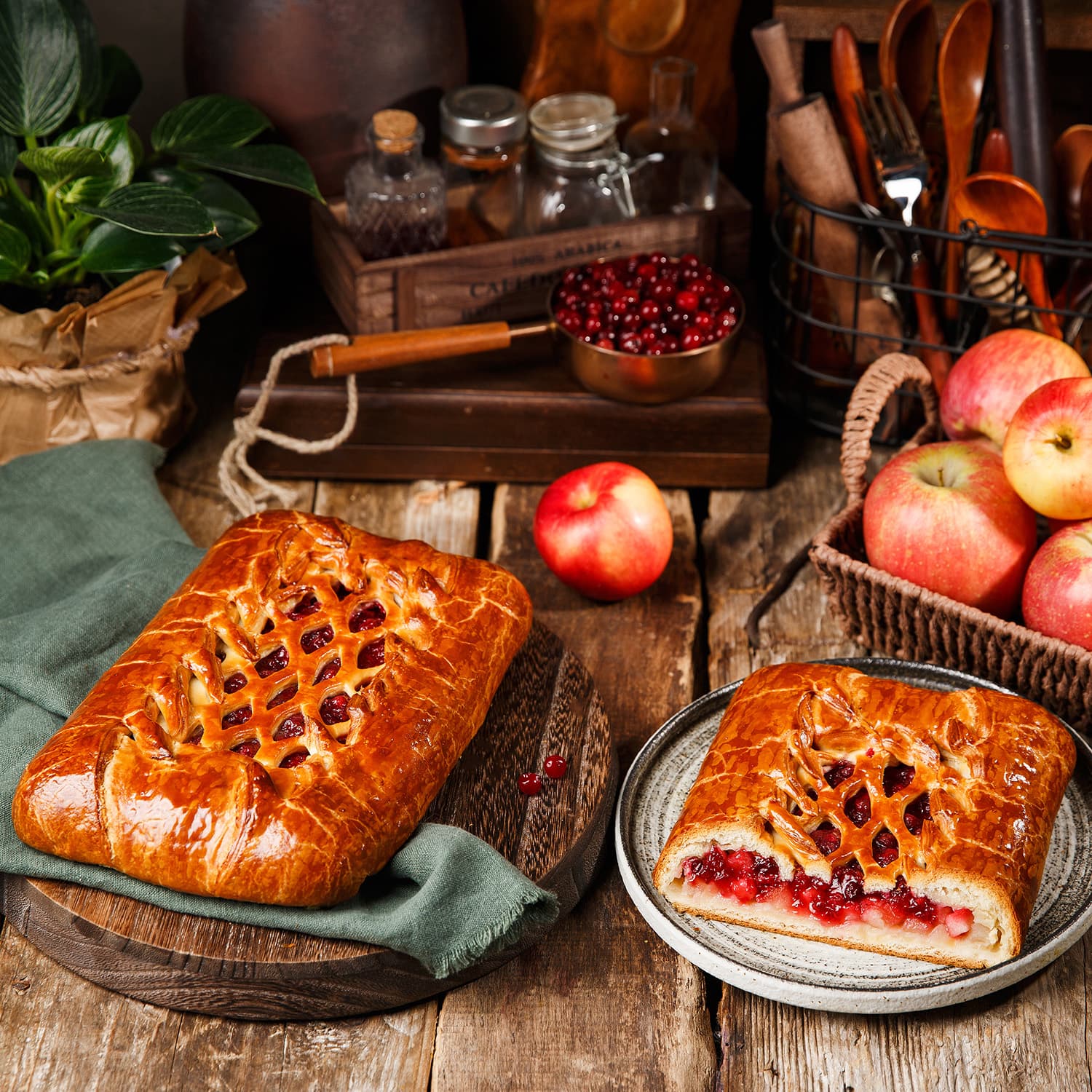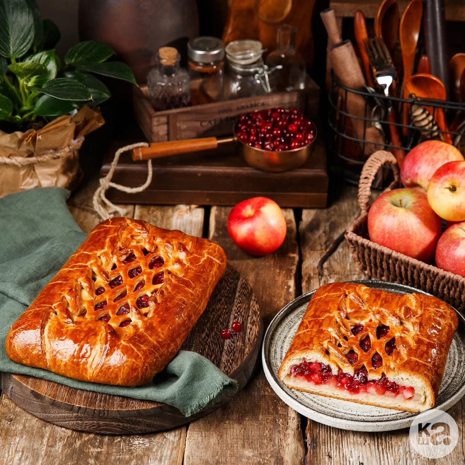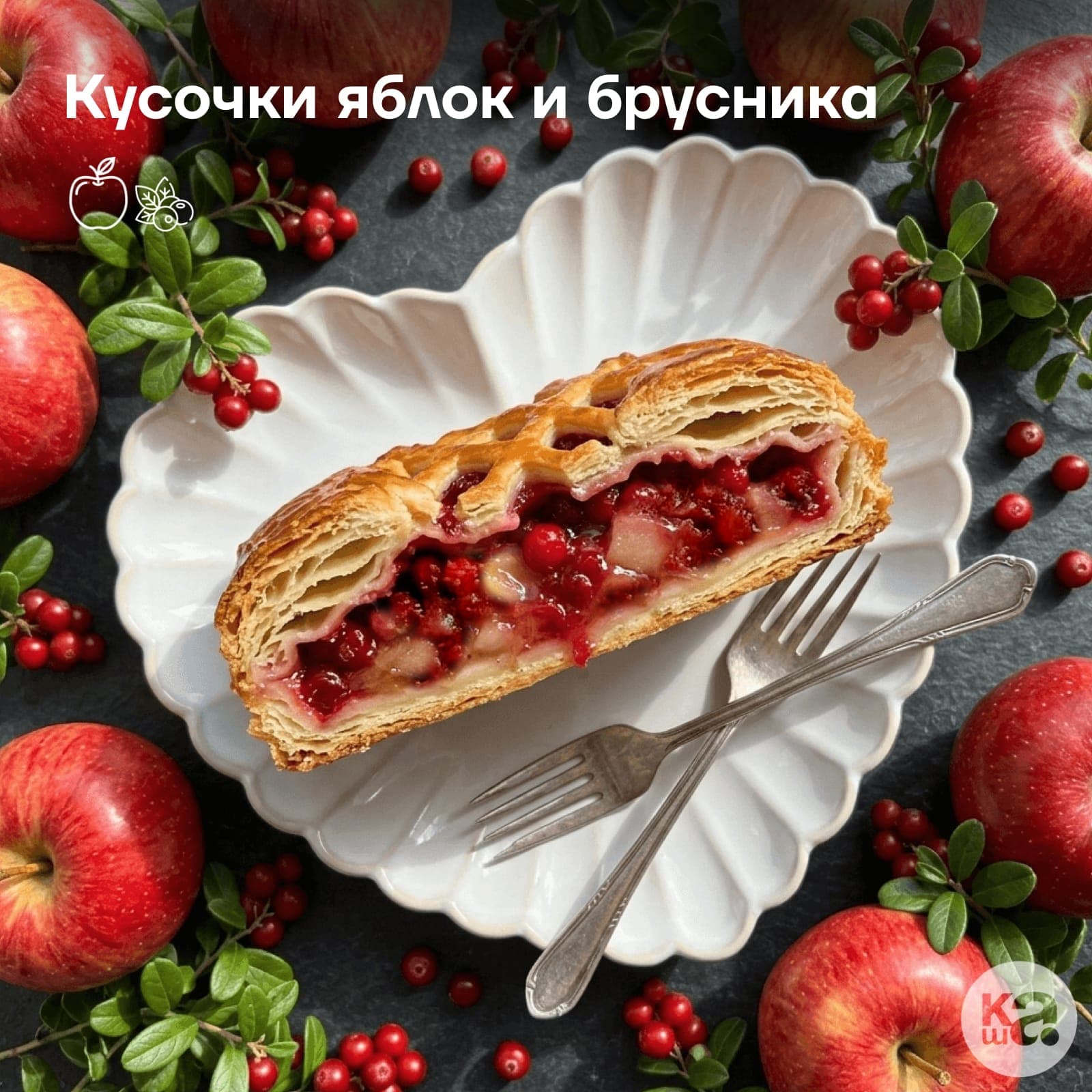 Пирог «Акуловский» с яблоками и брусникой