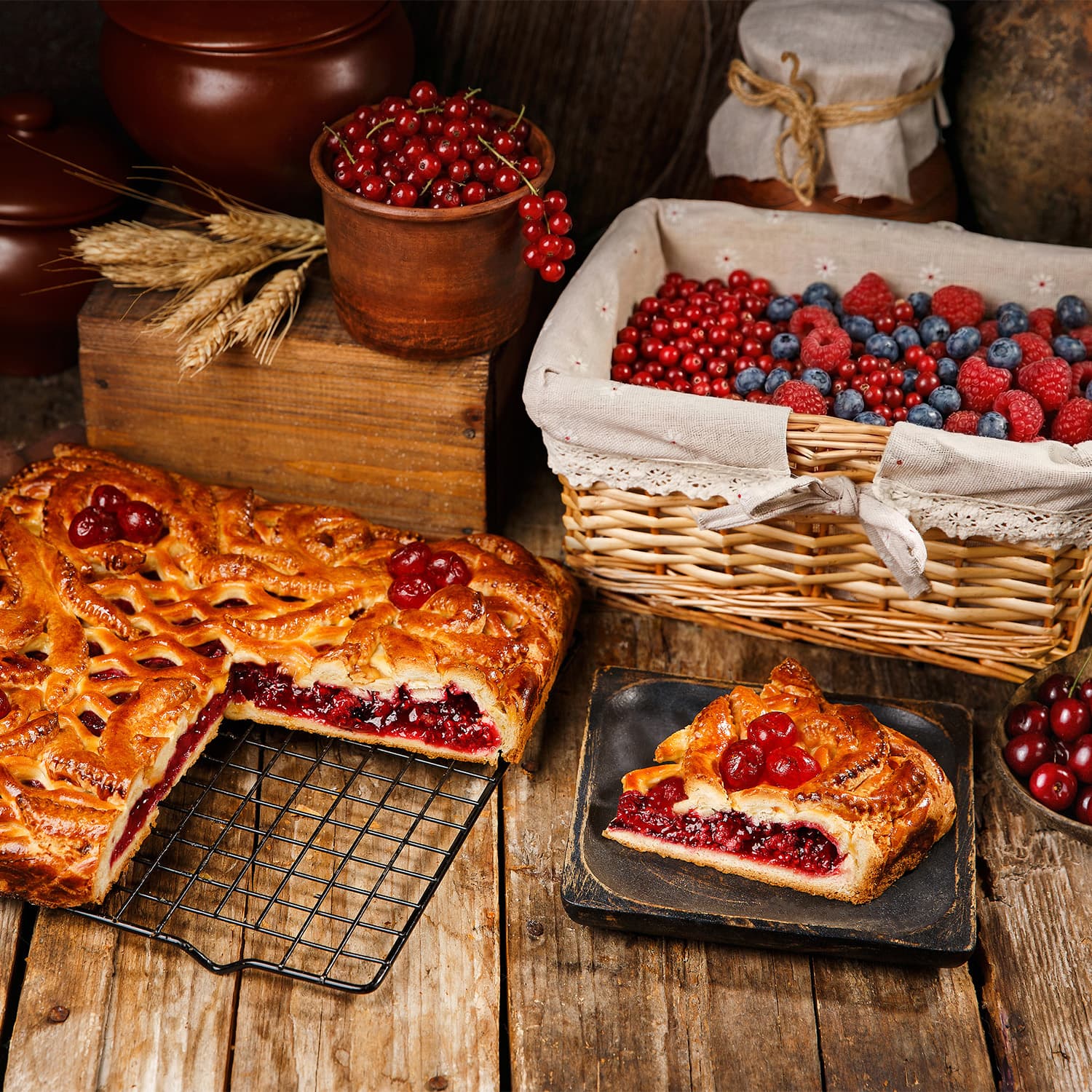 Пирог Русские узоры вишня и лесная ягода
