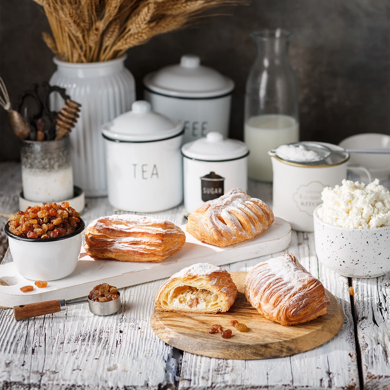 мука пшеничная хлебопекарная высший сорт, творог м.д.ж.9%, масло сливочное м.д.ж.82,5%, сахар белый, яйца куриные, вода питьевая, изюм, дрожжи хлебопекарные, соль поваренная пищевая, ванилин