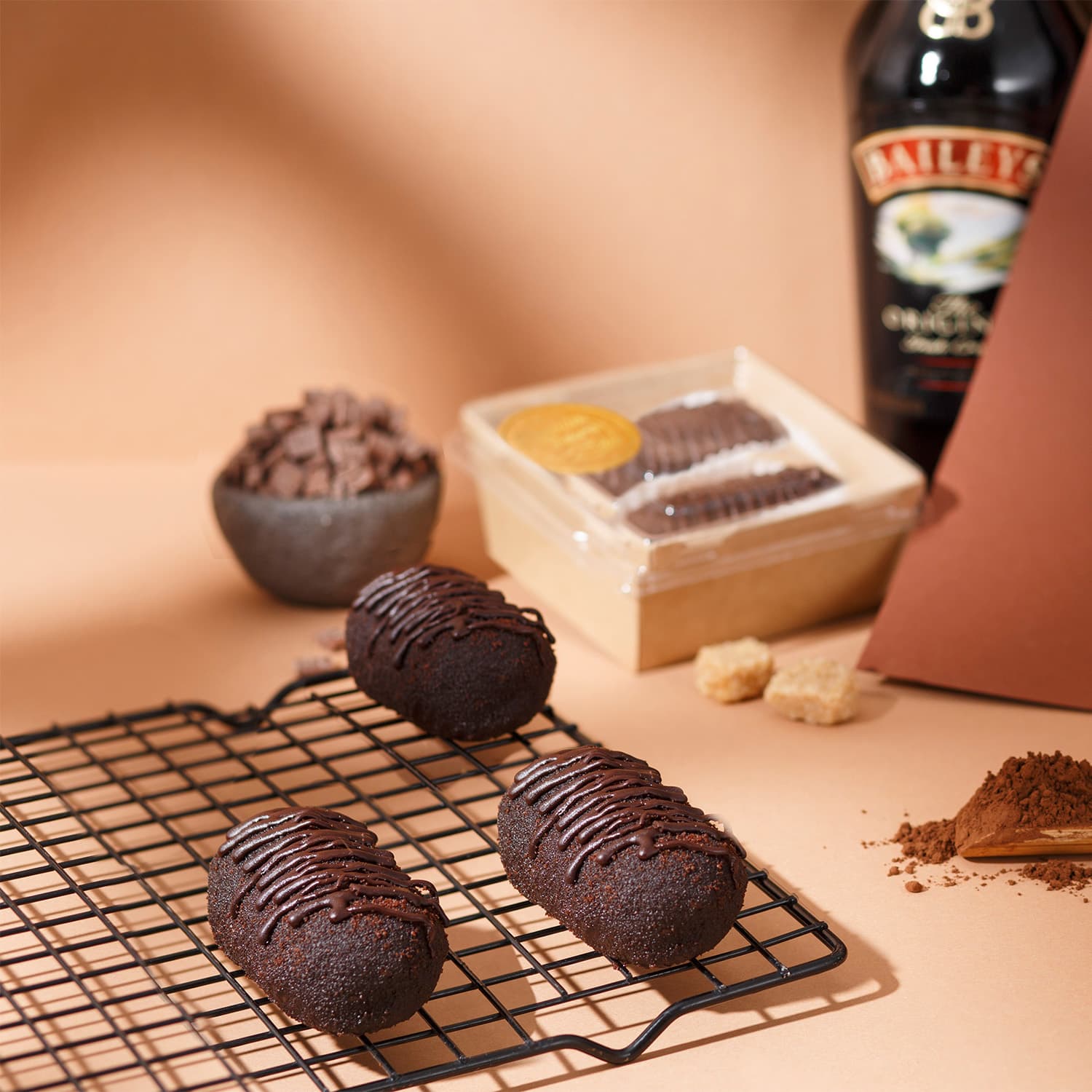 мука пшеничная хлебопекарная высший сорт, молоко питьевое м.д.ж. 3.2%, масло сливочное м.д.ж.82,5%, сахар белый, яйца куриные, повидло яблочное(пюре из яблок,сахар), какао-порошок, орех грецкий, коньяк, шоколад тёмный (сахар, какао-масса, какао-масло, эмульгатор (соевый лецитин), натуральный ароматизатор-ваниль), ликёр "Бейлис", ром, ванилин, соль поваренная пищевая